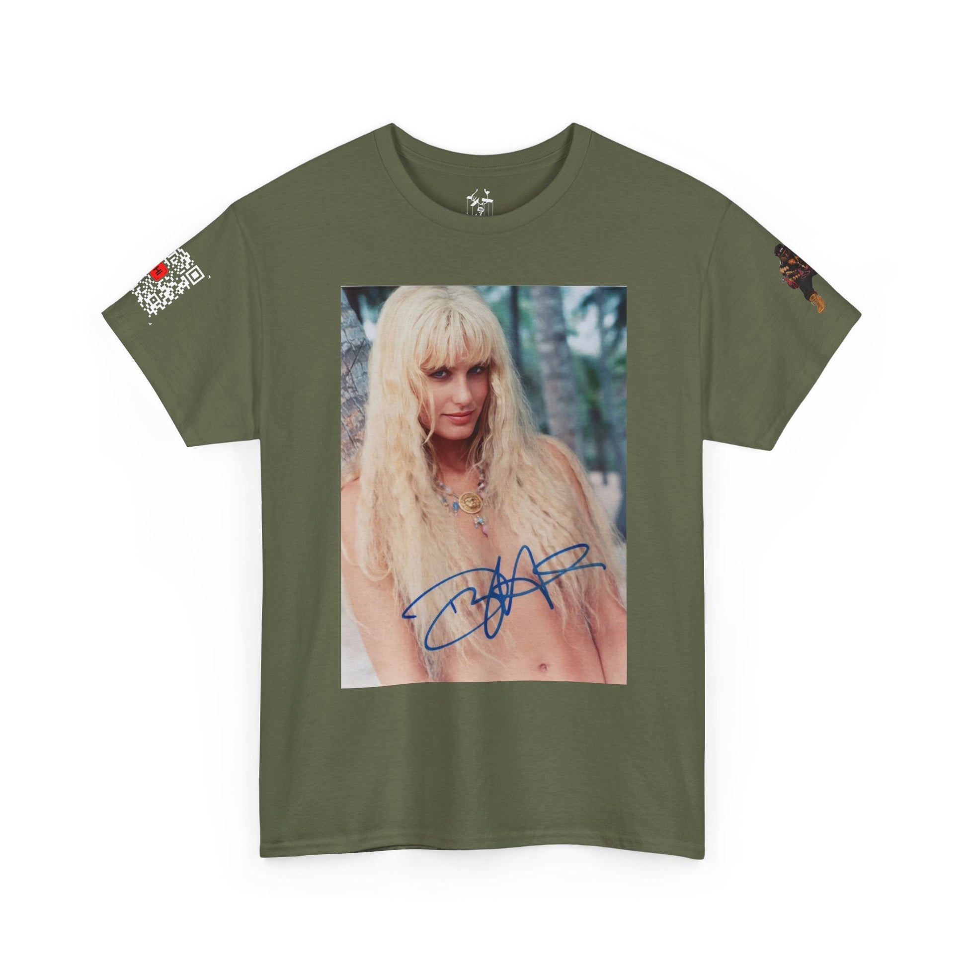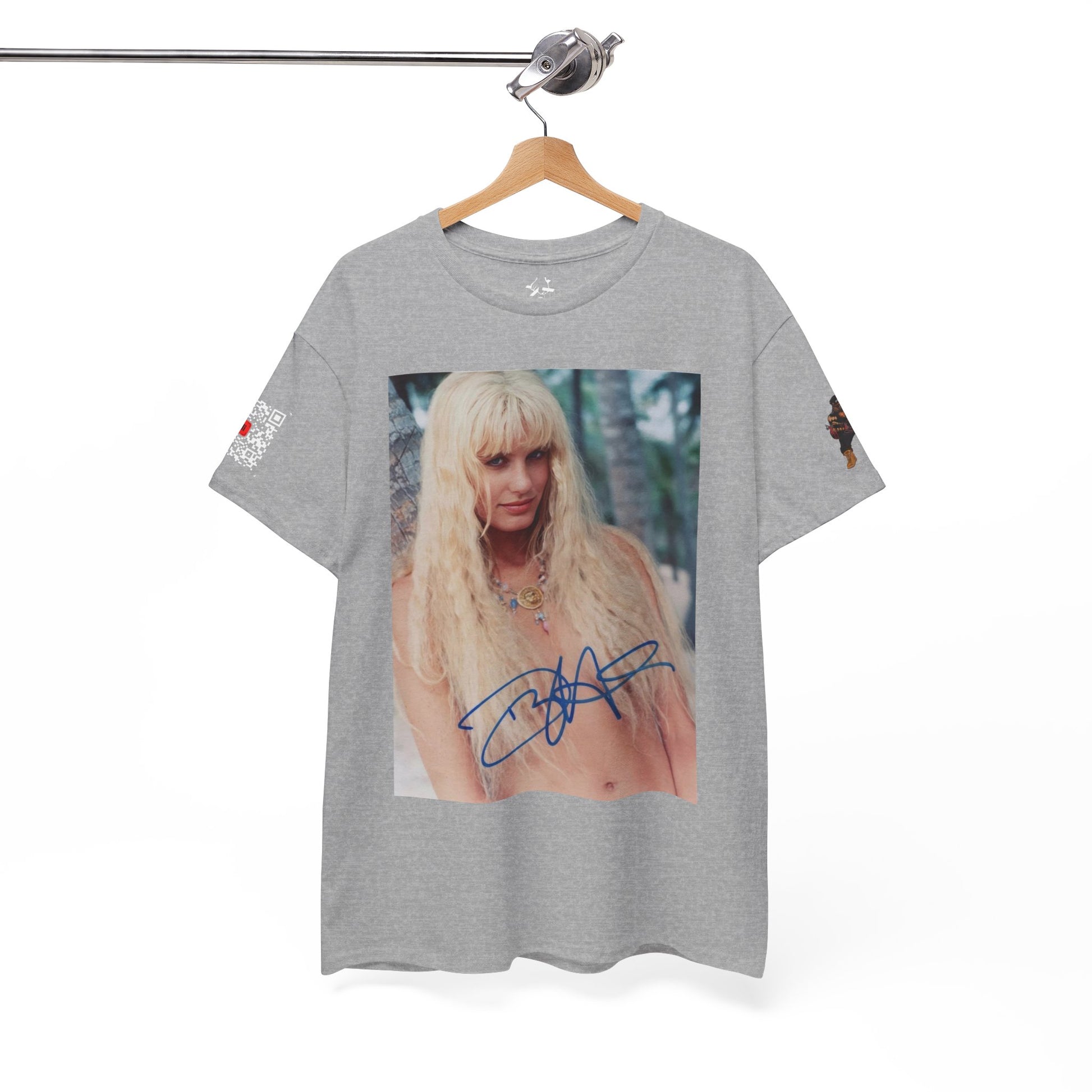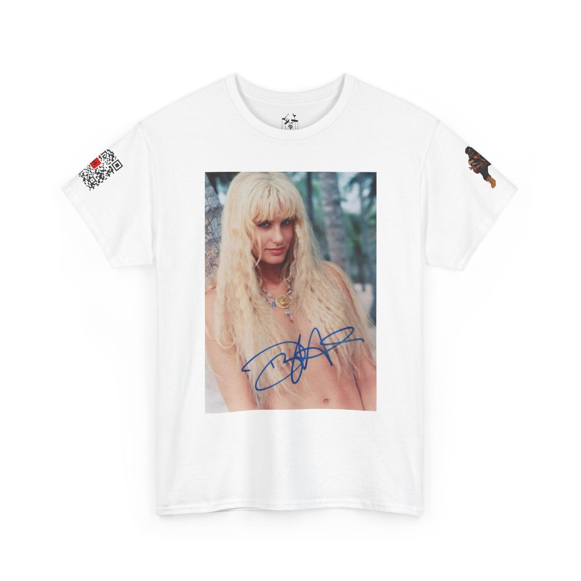 This tee nods to cult cinema with a bold, splash-pop graphic inspired by Darryl Hannah’s iconic presence. The image reads like a freeze-frame—vivid contrast, expressive motion—so the shirt feels like something you’d grab before a late-night film crawl or a gallery opening. It’s lived-in but deliberate: wear it with ripped denim and a thrifted jacket, or let it stand out under a blazer for a quieter statement. The fabric breathes and holds print detail sharply, so the artwork stays crisp through repeat wears. For anyone who collects cinema moments, feminist screen energy, or just likes wearable art with attitude, this shirt slips into that rotation and keeps its edge.
